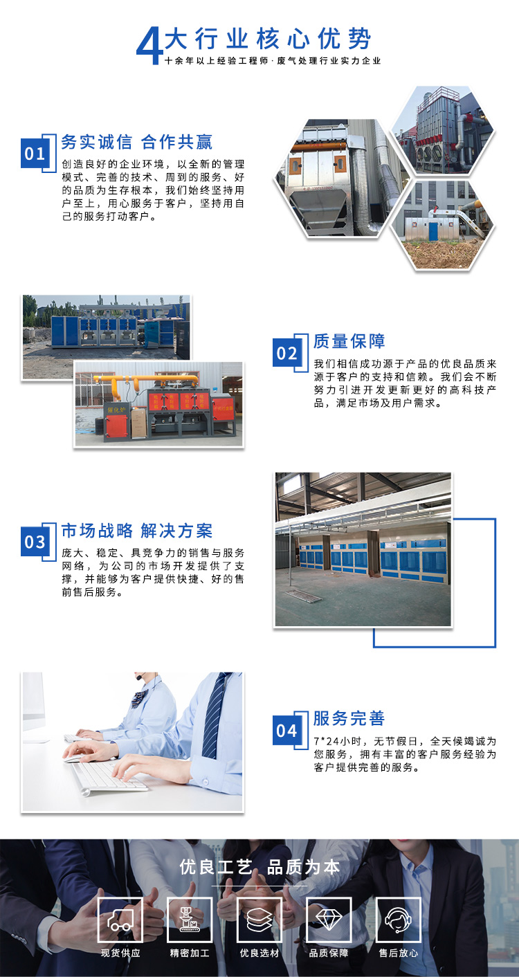 公司自成立以來,始終專注于工業(yè)廢氣、污水、粉塵等環(huán)境污染的治理,先后研發(fā)出催化燃燒設(shè)備、光氧催化廢氣處理設(shè)備、低溫等離子廢氣處理設(shè)備、粉塵處理-體化設(shè)備等一系列環(huán)保設(shè)備,產(chǎn)品先后通過ISO901質(zhì)量管理體系認(rèn)證、中國環(huán)境保護產(chǎn)品認(rèn)證。